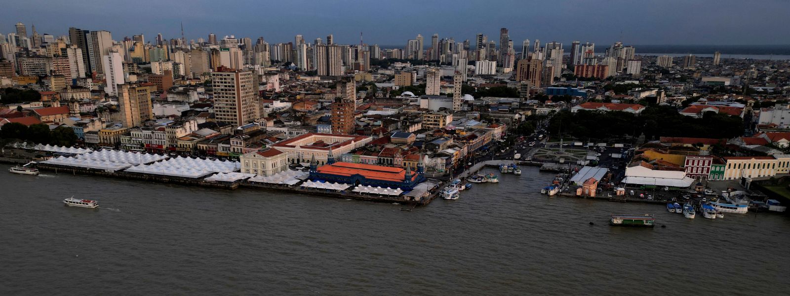 Image credit: A boat moves through Guajara Bay and historic city of Belem, Para state, Brazil, Friday, Oct. 31, 2025. (AP Photo/Eraldo Peres)